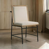 Description:Stylize your interior decor theme with our set of two Tory dining chairs in cream and light brown, a perfect blend of comfort and style. Featuring a sleek design with soft cream upholstered seats, each chair has luxurious black accent metal legs for a touch of opulence. This duo seamlessly combines dining room decor themes from vintage to modern style. Check out our Tory collection for more.