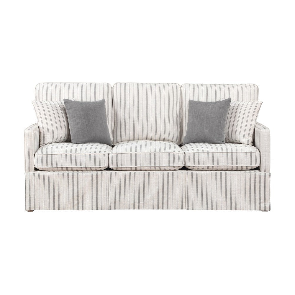 Tory Sofa with 4 Throw Pillows | Gray White Striped Polyester | 79"