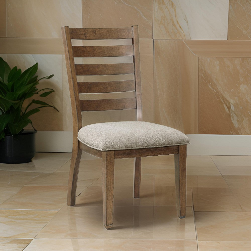 Trea 23 Inch Side Dining Chair, Ladder Back, Brown, Beige Cushioned Seat By Casagear Home