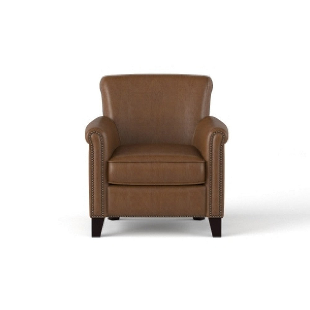 Tria Sofa Accent Chair | Brown Faux Leather | Nailhead Trim | 32"