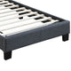 Combining elegance and comfort, this Twin Bed makes a perfect addition to your bedroom for an easy update to the existing setting. The nailhead trim, button tufted details, and a scalloped headboard add to its visual appeal. It boasts a sturdy construction of poplar wood, MDF, and particleboard for long lasting durability.