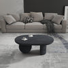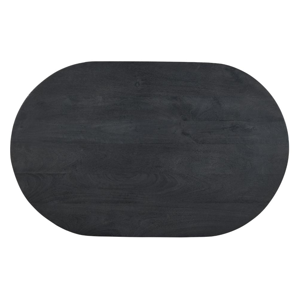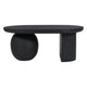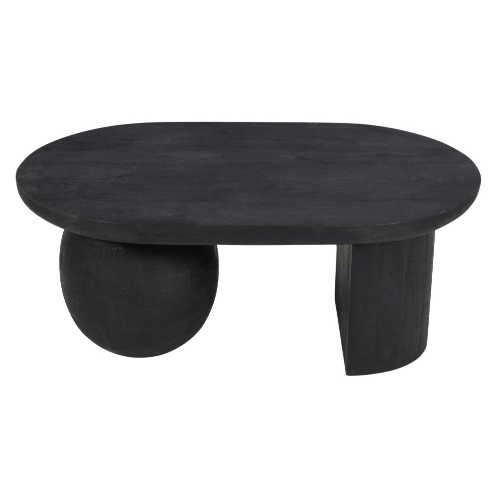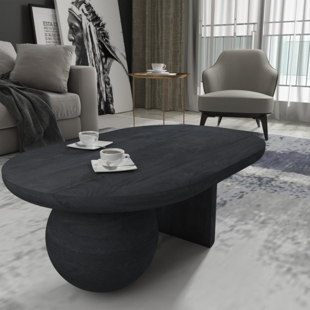 Whether you are creating a monochromatic palette or need a coffee table with ample surface area for entertaining guests, this artisan crafted Uri coffee table is sure to meet your needs. Crafted from solid mango wood, this piece features a warm, sandblasted black finish that enhances the wood's natural figure. The oblong top provides ample surface area for entertaining guests or displaying your favorite décor pieces. It sits upon a finely crafted spherical and triangular block base to turn the coffee table into a work of art. This striking base not only provides stability but also adds a modern, sculptural element to the design. Whether you're sipping coffee, browsing through photo albums, or showcasing your favorite decor, this coffee table is sure to complement your space and meet all your functional needs.