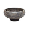 Terracotta Bowl Finished In An Aged Black With Gold Highlights And Accented By A Water Hyacinth Covered Base.