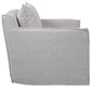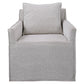 Casual Swivel Accent Chair Features A Tailored Slipcover Made From Ivory And Warm Gray Boucle Fabric With Flanged Edges And A Matching Square Pillow. The Hardwood Swivel Base Is Finished In A Natural Ceruse. Seat Height Is 18".