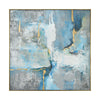 Evoking A Mid-century Modern Style, This Hand Painted Abstract On Canvas Makes A Bold Statement. Bright Blue Shades Are Complimented By Wide, White And Gray Brushstrokes And Bright Gold Leaf Accents. A Petite, Gold Gallery Frame Surrounds The Canvas, Which Has Been Stretched And Applied To A Wooden Frame. Due To The Handcrafted Nature Of This Artwork, Each Piece May Have Subtle Differences. This Piece May Be Hung Horizontal Or Vertical.