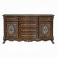 Description:Introduce timeless elegance with our Vany antique wide dresser. This dresser includes six spacious drawers and two side cabinets with antique-style handles, dovetail joints, and side metal glider tracks for smooth operation. The felt-lined top drawer safeguards delicate items, while intricate chrome details and curved feet enhance its traditional charm. Check out our Vany collection for more.