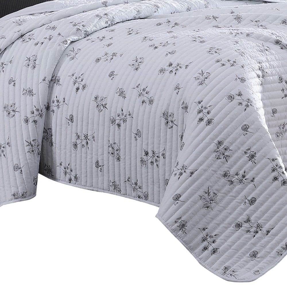 Give a quick makeover to your bedroom with the introduction of this 5 piece king Quilt set, which comprises 1 Quilt, 2 pillow shams and 2 decorative pillows. Crafted completely from soft microfiber, it showcases exquisite floral print in the hues of white and gray.