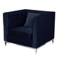 Vien 36 Inch Accent Chair, Nailhead, Tufted Blue Velvet Upholstery, Chrome By Casagear Home