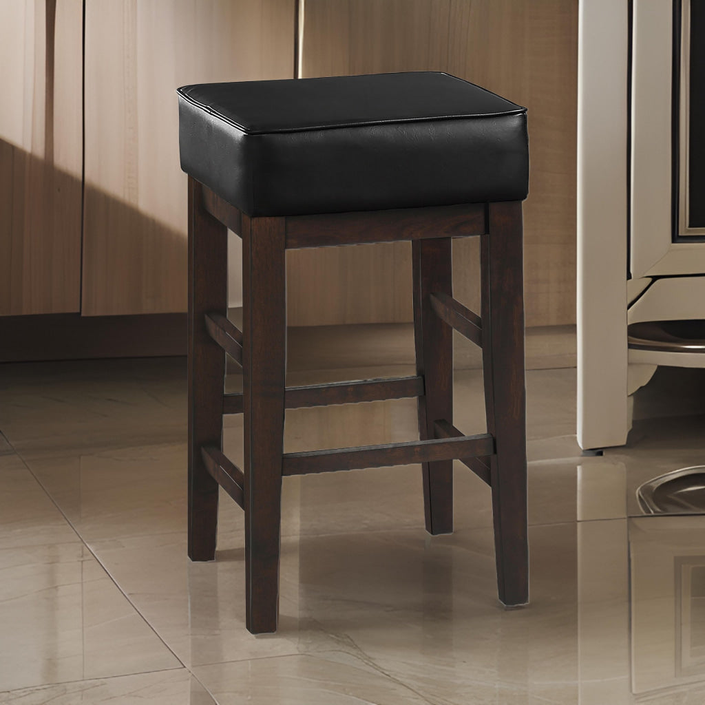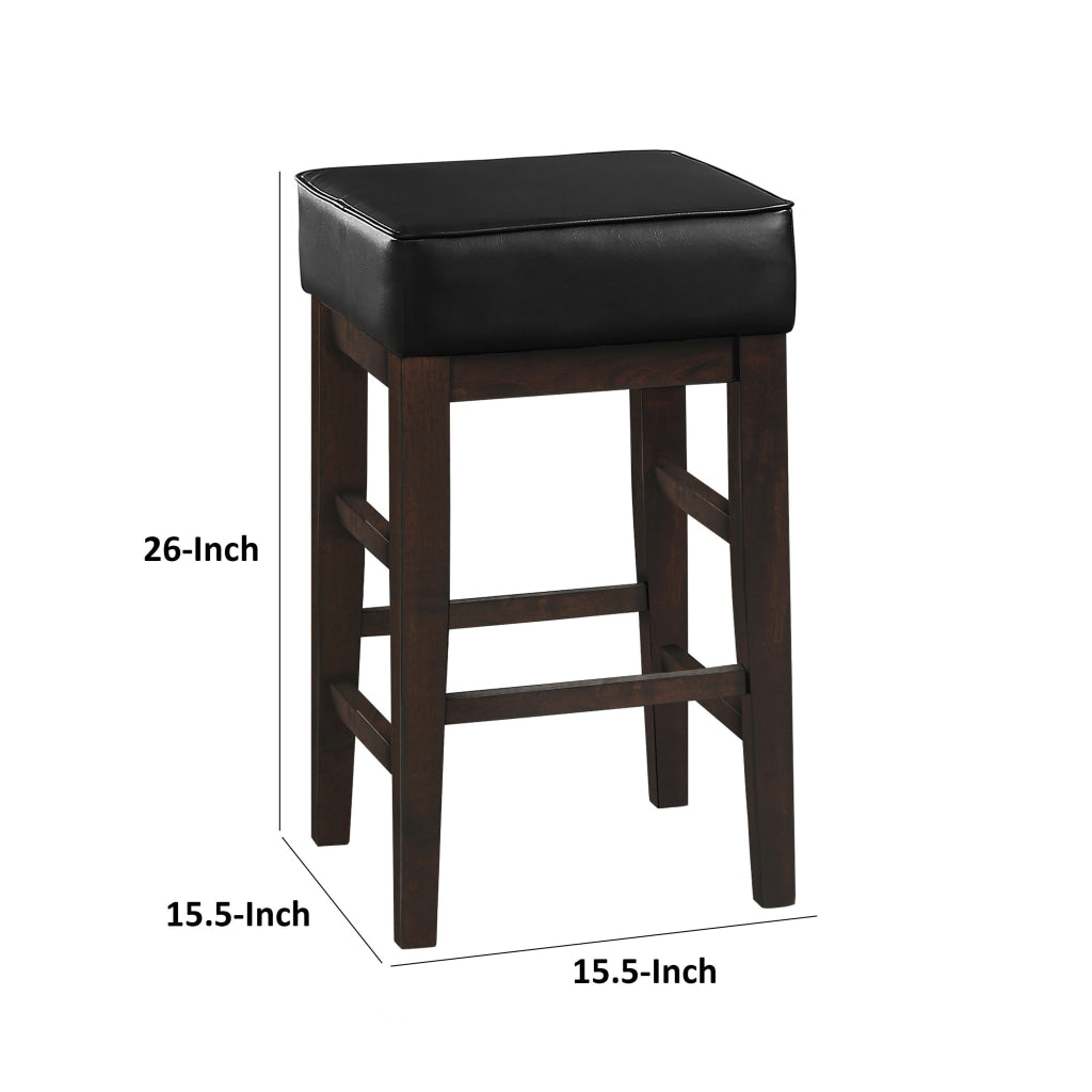 Vin 26 Inch Counter Height Stool, Black Faux Leather Seat, Dark Brown, Set of 2 By Casagear Home