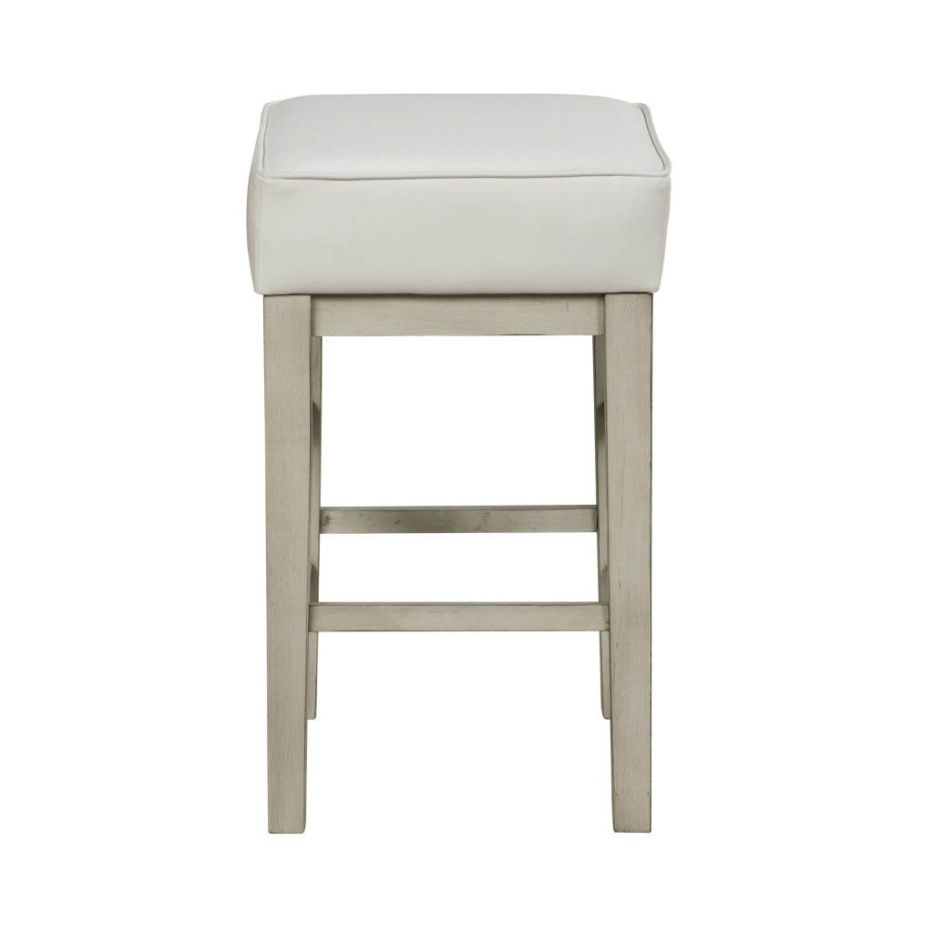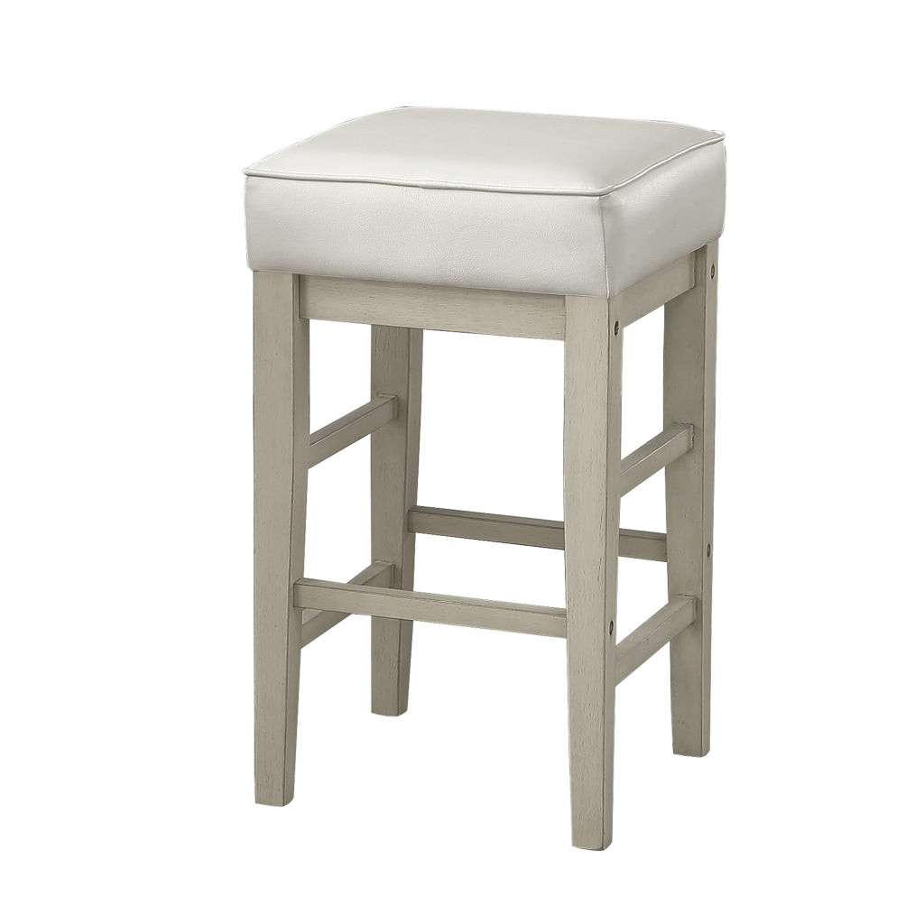 Elevate your dining experience with this set of two our transitional Vin square counter height stools. The sturdy, solid wood frame features a sleek white finish, while the square white faux leather seat with a plush foam cushion offers timeless comfort. Stylish ladder bases on two sides provide visual interest, complemented by convenient footrests for relaxed seating. Check out our Vin collection for more.