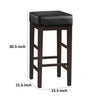 Vin 31 Inch Bar Height Stool, Black Faux Leather Seat, Dark Brown, Set of 2 By Casagear Home
