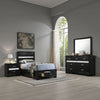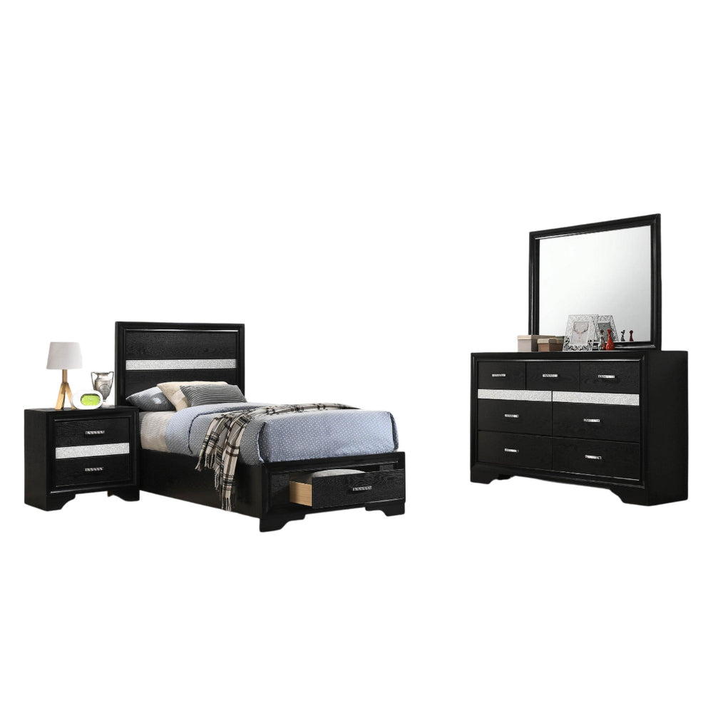 Vino 4pc Twin Bedroom Set, Storage Footboard, Black, Glitter Stripes