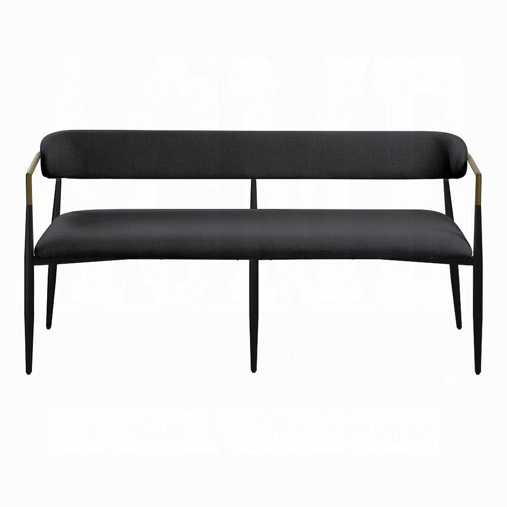 Vonn Bench, Open Padded Back and Black Upholstery, Wood Metal Frame