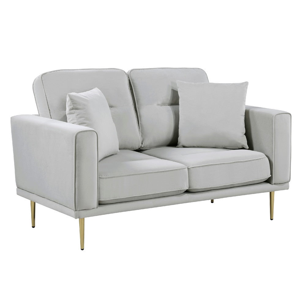 Voxo Loveseat | Gray Velvet Padded Seat | Two Accent Pillows | 58"
