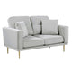 Introduce a refined and bold character to your space with this striking loveseat, designed to captivate and comfort. Constructed with a solid wood and plywood frame, it features luxurious gray velvet upholstery and sleek gold metal legs for a refined finish. Reversible cushions with removable covers ensure long-lasting function. Explore our Voxo collection by Casagear Home.