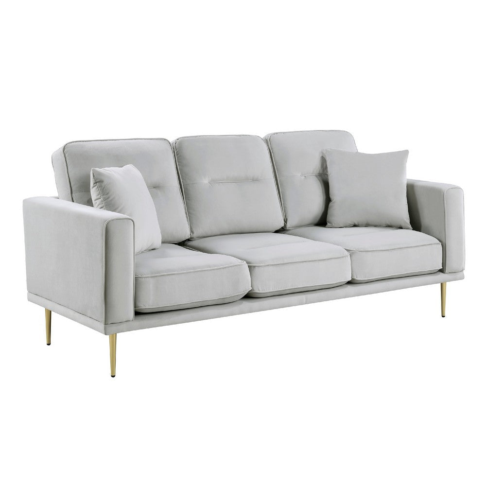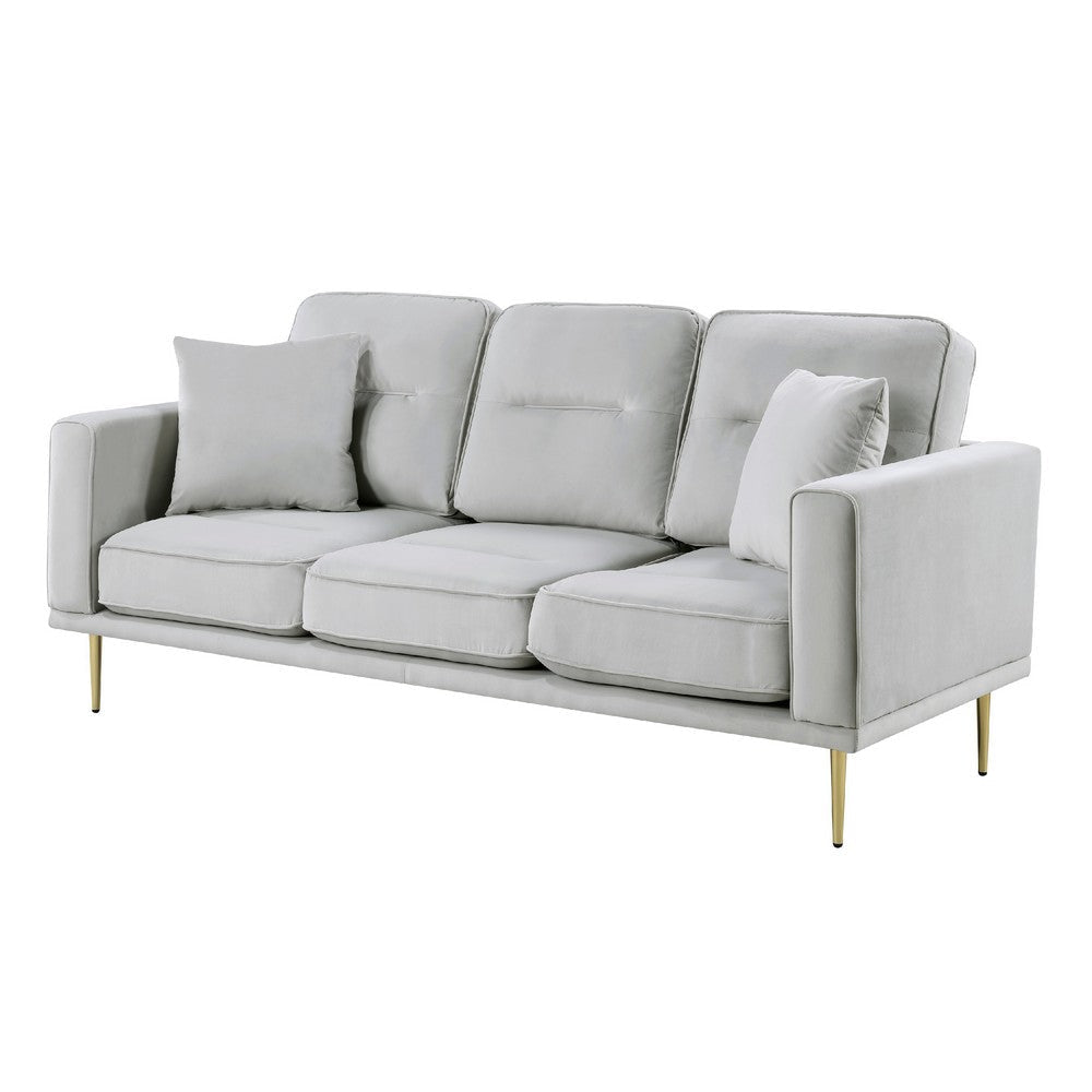 Voxo Sofa | Gray Velvet Padded Seat | Two Accent Pillows | 82"