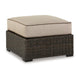 Description:Elevate your lounging experience with our Waga outdoor ottoman, meticulously crafted for style and durability. Constructed with sturdy stainless steel, it is adorned with all-weather resin wicker handwoven in a rich brown finish, ensuring resilience against the elements. The cushioned seat and back offer comfort and invite you to relax in luxury. Check out our Waga collection for more like this.