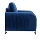 Wiena Accent Sofa Armchair, Vertical Pleated Blue Velvet, Chrome Legs