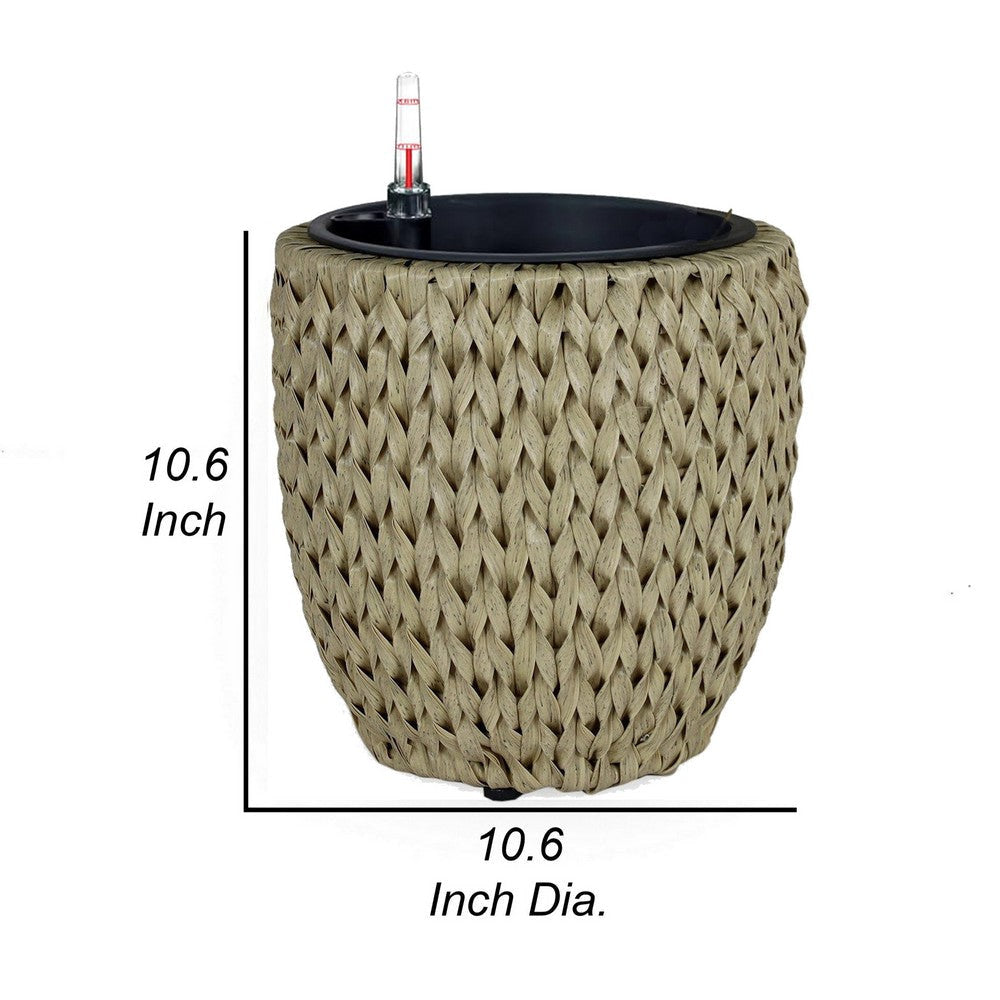 Wiki 11 Inch Self Watering Planter, Handwoven Rattan Wicker, Beige By Casagear Home