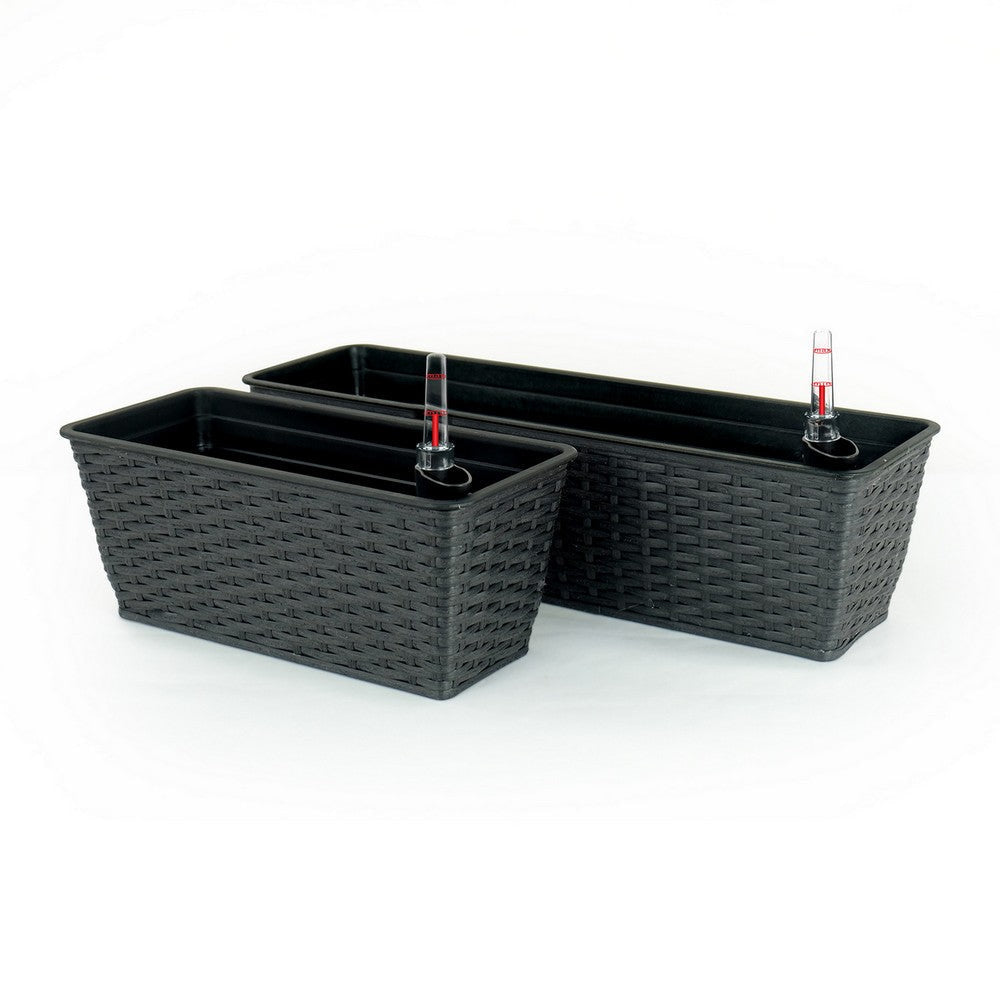 Wiki 23 Inch Self Watering Planter Set of 2, Woven Wicker, Espresso Brown By Casagear Home