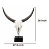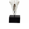 Constructed with the flair to restyle any space by displaying its wild and beautiful features, this Cow Skull is unique and catchy. Showcasing a white hued skull and brown finished horns, it comes with a squared black base stand.