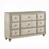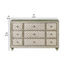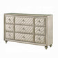 Willa Wide Dresser Chest, 9 Drawers, Faux Crystal, Tufted Beige Velvet