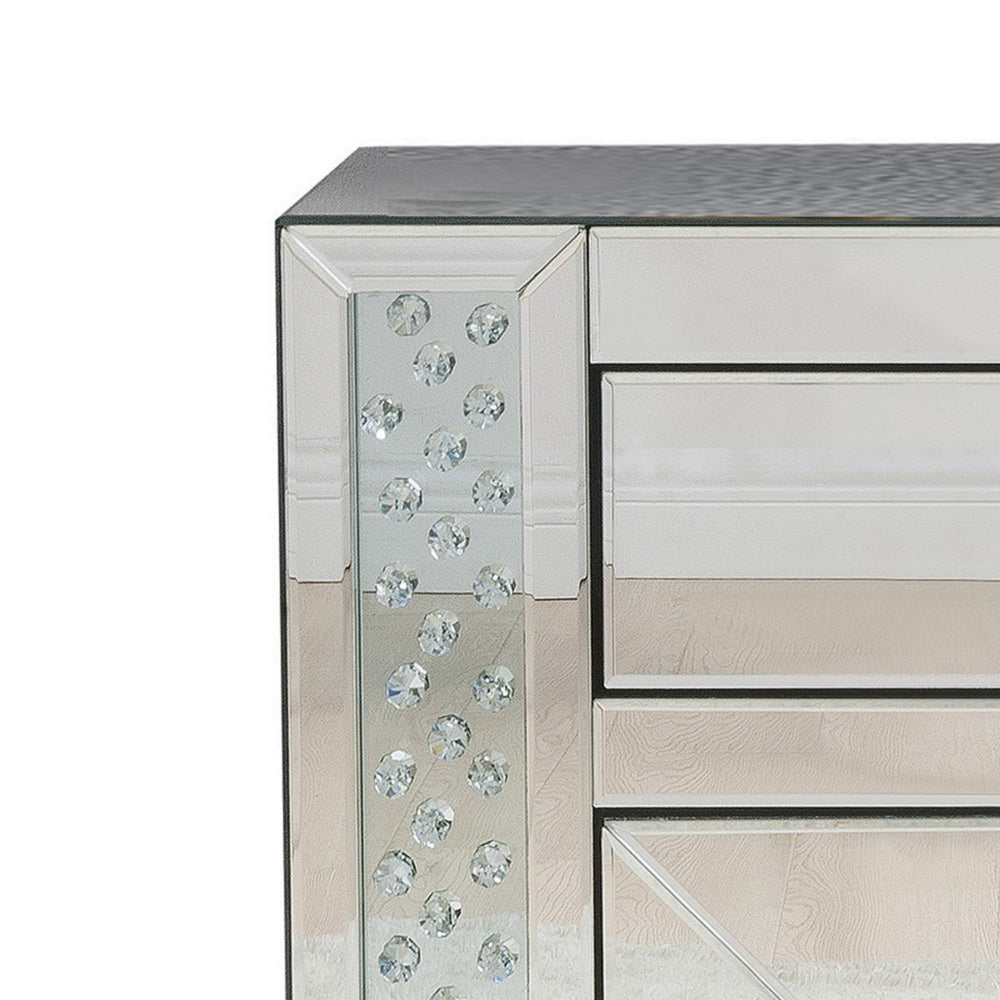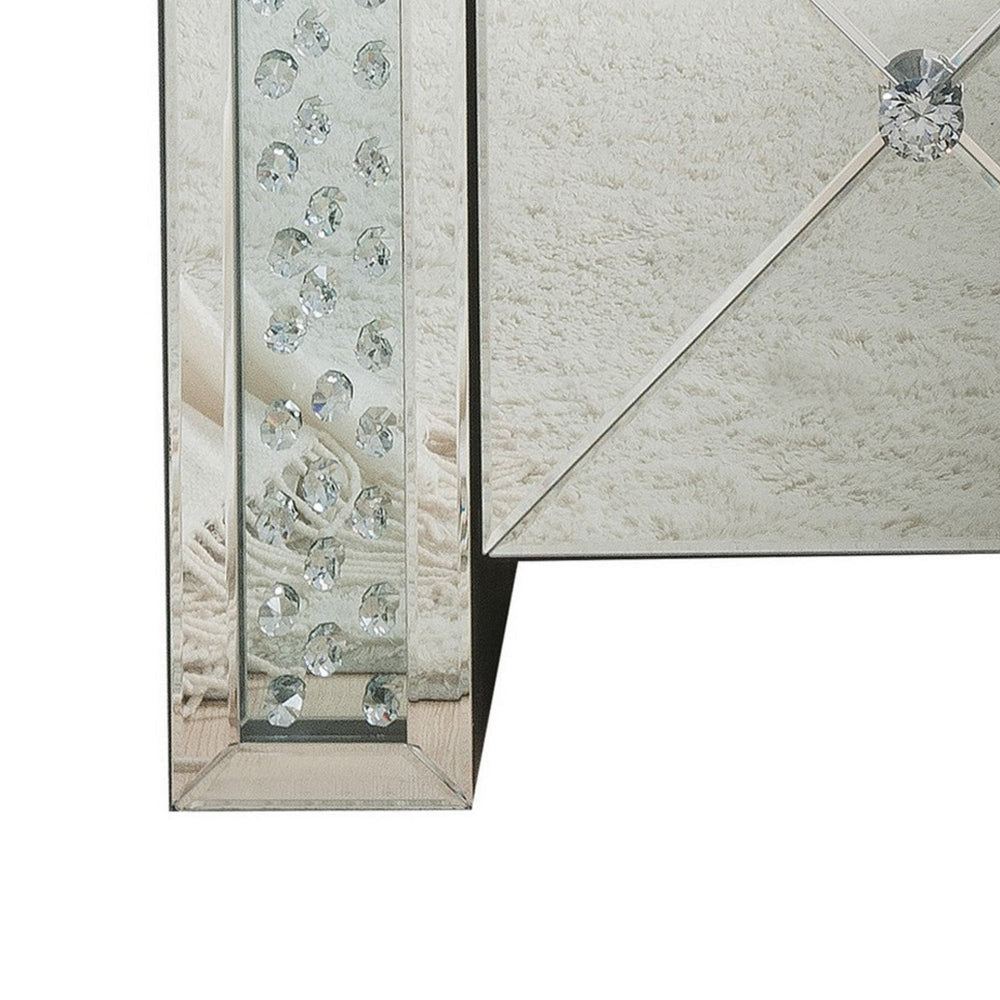Nightstand | Wood & Mirror | Crystal Inserts | Silver