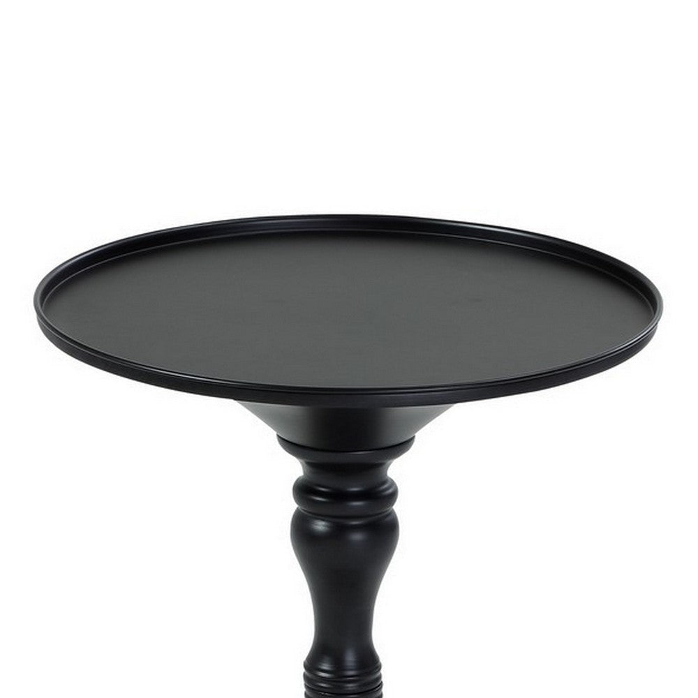 Wowi 23 Inch Side End Table, Round Hourglass Turned Base, Black Finish By Casagear Home